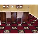 University of Alabama Carpet Tiles 18"x18" tiles Officially licensed modular carpet flooring. Ideal for sports themed rooms or gyms. 20 tiles, 10 logo tiles and 10 solid tiles. Covers 45 sqft. Made in U.S.A. Man-made fiber carpet face and vinyl backing. Easy installation. No under padding required.